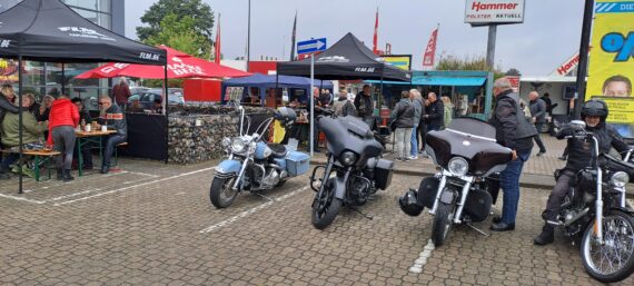 Das war das Bild auf dem großen Parkplatz bei Harley Bremen. Das wir dort sogar dominierten, fand dich denn doch echt erschreckend. Später war aber noch mehr los.