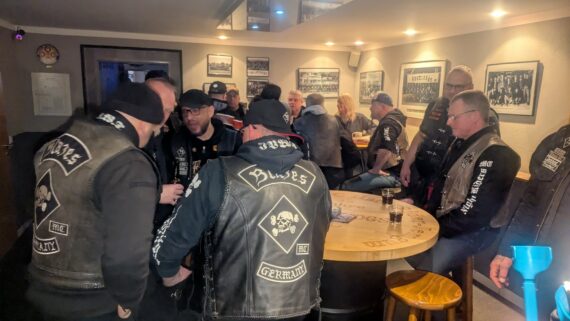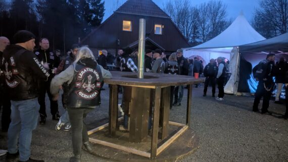 Für mich ergaben sich im Laufe des Abends gute Szenegespräche, unter anderem mit dem National des Free Eagles MC Germany sowie mit einem Führungsmember des Blazes MC Germany vom Chapter in Hollen. Da auch mein ehemaliger Bandkollege Jens aufschlug, er zupfte im Wild Rock Projekt den Bass, konnte ich mich über mangelnde Unterhaltung wahrlich nicht beschweren. Jens ist ebenfalls Member bei den Blazes.
