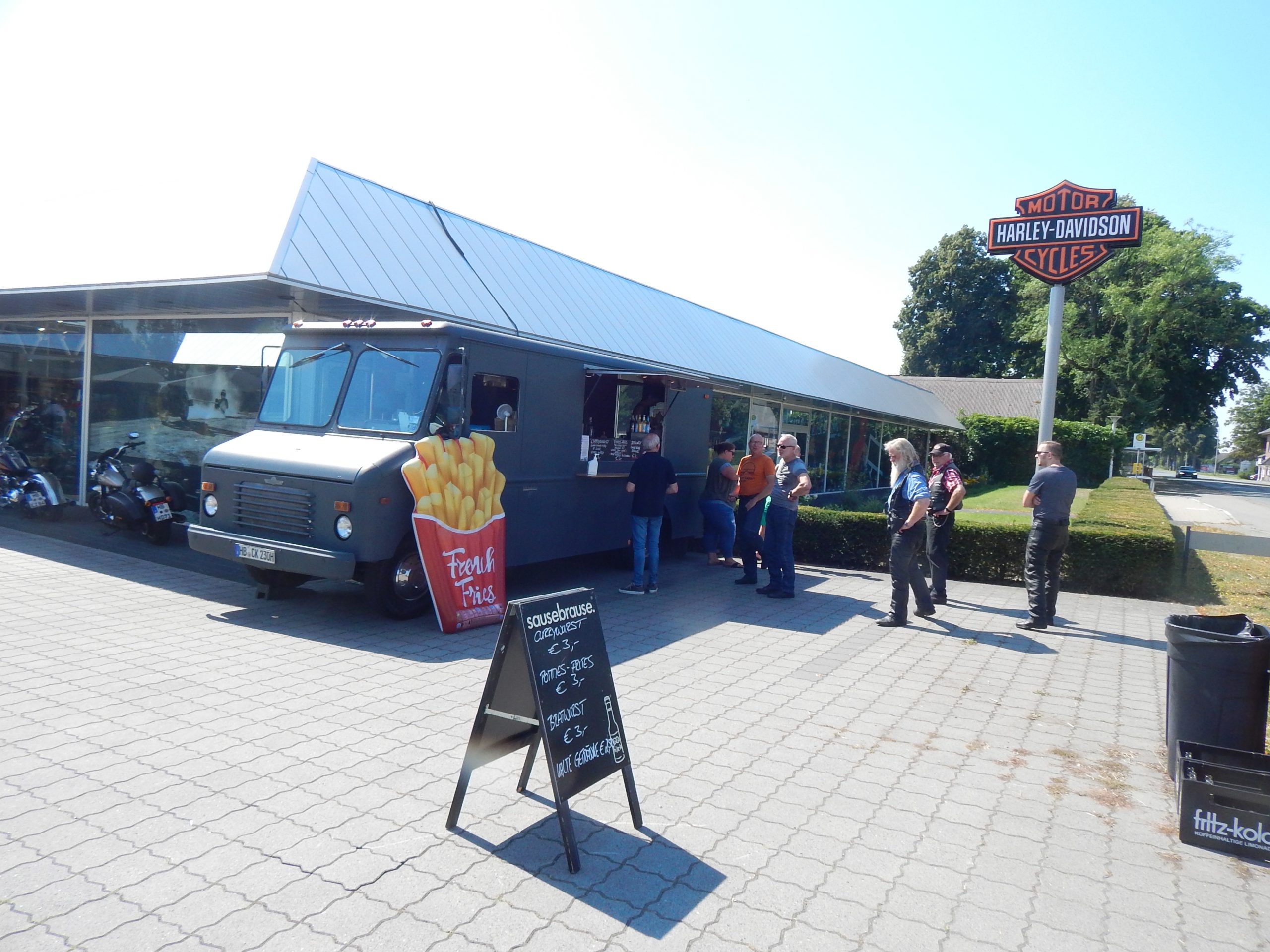 Ich finde aus diesen Probefahrt-Aktionen kann man mehr machen, jedenfalls dann, wenn man die Gäste länger binden möchte. Die Wartezeiten zu den Probefahrten hin sind schon etwas länger und mit einer coolen Rockabilly- oder Rockformation könnte man diesen Aktiontagen einen gefälligen Rahmen bieten. Das muss Börjes aber für sich entscheiden. Für den kleinen Hunger stand vor dem Gebäude ein Foodtruck. Die Preise waren etwas höher, aber dafür schmeckte die Bratwurst ausgezeichnet und die Getränke waren schön kalt..