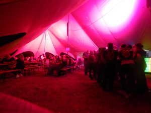 Mit IBC-Tanks haben die Negris im großen Zelt einen Tresen erstellt. Cooe Idee, zumal die Tanks von innen beleuchtet und dadurch effektvolle Lichtreflexe erzeugt wurden!