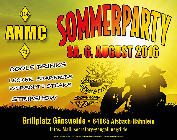 Der Hesse hatte mir kurzfristig davon berichtet, dass er heimische Gefilde anfährt und mit seiner Lady die Sommerparty des Angeli Negri MC Rhein-Main besuchen wird. Cool, könnte er mir sodenn doch mal gleich einige Fotos von der Party mitbringen. Nun, es kam stattdessen ein Leserbrief, was ich natürlich noch viel besser finde. Und da der in 1973 gegründete MC selber reichlich Impressionen beisteuerte, sind wir komplett und starten direkt durch. Was ging ab?