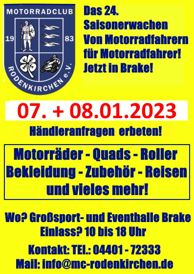 Doch trotz der erheblichen Planungshindernisse finden gleich zum Beginn des Jahres 2023 Messen statt. Hier einige Beispiele. Opener ist das Saisonerwachen des MC Rodenkirchen im Januar in der Eventhalle in Brake, danach lockt die größte norddeutsche Konsummesse, die HMT in Hamburg. Letztere hat sich entschieden andere Fachmessen mit in das Gesamtkonzept zu integrieren, wobei mein Austausch mit dem Veranstalter aufzeigte, dass die HMT selber eigentlich von seiner bisherigen Präsentation kaum betroffen sein werden. Darauf gehe ich aber in einem weiteren Bericht gesondert ein.