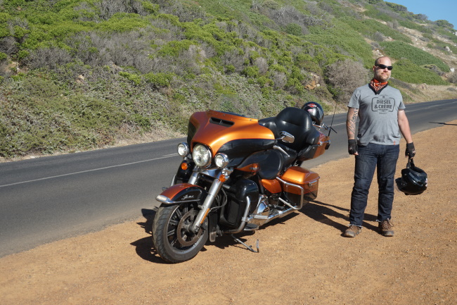 Ich habe meinen Motorradführerschein mit 19, also 1996 gemacht. Das erste Bike hatte ich jedoch erst im Jahr 2004, eine Suzuki VX 800. Wenn ich in Deutschland unterwegs bin, fahre ich eine Harley Sport Glide und hier in Südafrika meistens eine Ultra Limited.