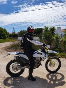 Aktuell fahre ich eine Triumph Speed Triple, eine Yamaha Ténéré 700 und eine Harley Davidson Sportster 48. Und wenn ich meine Frau nett frage, dann darf ich auch mal ihre BMW r NineT ausführen. Und mein Vater bringt mir zum Glück das Vertrauen entgegen, dass ich immer wieder in den Genuss komme eine Husqvarna FE 350 mit Dreck zu verzieren.