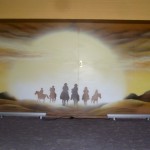 Viele Biker haben eine hohe Affinität zum Wilden Westen. Ritt der Indianer seinerzeit noch hoch zu Ross durch die Prärie, sind wir die neuen Cowboys, die mit ihren Maschinen on the Road ihre Freiheit suchen. In der Texas River Ranch erwartet euch eine aufwendig umgestaltete Lokation. Die Struktur blieb zwar erhalten, doch ansonsten haben die Betreiber mächtig investiert, ohne dass die Ausgestaltung überladen und kitschig wirkt. Ich bin zwar kein Experte, aber die aufwendigen Graffitis sowie etliches dekoratives Mobiliar macht auf mich einen authentischen Eindruck, denn ich war selber schon in den USA mit dem Bock unterwegs und habe dort einige Gastrobetriebe im Western-Style kennen gelernt. Das passt!