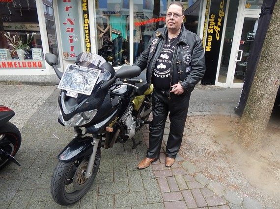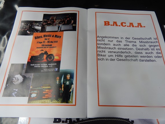 Zombi vom B.A.C.A.A e.V. ist eigens aus Bocholt angereist. Er ist in Sachen Bikes, Music & More ein Mann der ersten Stunde und hat bei uns schon etliche Bekanntschaften geschlossen. Er ist authentisch in dem was er tut und ein würdiger Vertreter der Biker-Organisation gegen Kinderpornografie und Missbrauch. Die an sich zuständigen Regional-Vertreter mögen es mir nachsehen, aber ich legen persönlichen Wert darauf, dass er bei meinem Events dabei ist. Guter Mann!