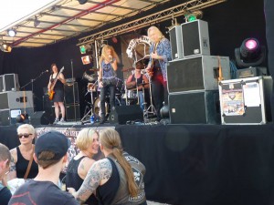 Gegen 18.00 Uhr durften dann Wildfire zu ihrem Premieren-Gig ran. Nun wird es allerdings schwierig. Ich versuche es mal so zu beschreiben: Entweder hersschte eine enorm hohe Nervosität ob des Premieren-Gigs oder die Band hat sich nicht wirklich auf das Konzert vorbereitet. Wie auch immer, die beiden Set-Abläufe wirkten unstrukturiert.
