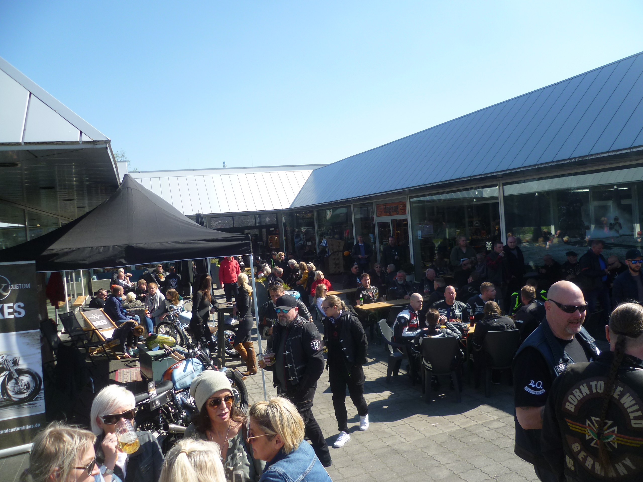 Eine ganze Menge. Bei meinem Eintreffen war das gesamte Gelände rappelvoll mit Bikes belegt. Keine Ahnung wie viele, aber es waren unzählige. Etliche namenhafte Firmen aus dem After Market sowie andere Motorradmarken präsentierten bei Kaiserwetter ihre Produkte, darunter u. a. KessTech, Dr.Jekill & Mr. Hyde. Honda Huchting, Ducati sowie John Doo.