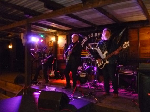 Mit rund 80 Bikes war man vom Treffpunkt gestartet und durch die Region gecruist, Ziel war natürlich das Klubgelände. Gleich zwei Bands hatten die Roctocker Borns gebucht. Die erste Kombo zelebrierte eine Art Garagenpunk. Sie ging ordentlich ab. Auch wenn dieses Genre in Klubhäusern eher selten geboten wird, so markierten sie einen Hallo-Wach-Effekt.