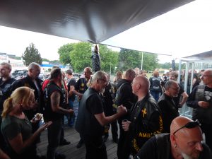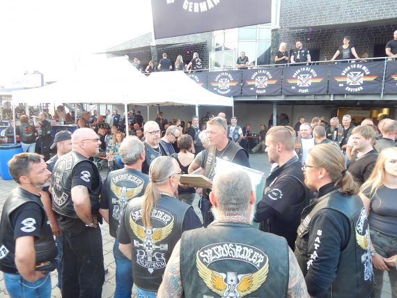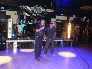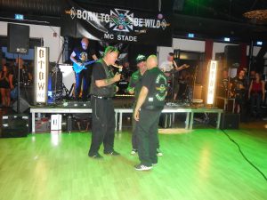 Zwischen den beiden Auftritten wurden noch einige Member für ihre jahrelange Treue geehrt, allen voran natürlich Uwe und Hacky, die als Gründungsmember des Chapters Stade nach wie vor absolut aktiv sind und das Chapter maßgeblich prägten bzw. immer noch prägen. Chrischan, Ex-President, erhielt die Ehrung für 25 Jahre, Micken und Olaf für jeweils 10 Jahre Mitgliedschaft.