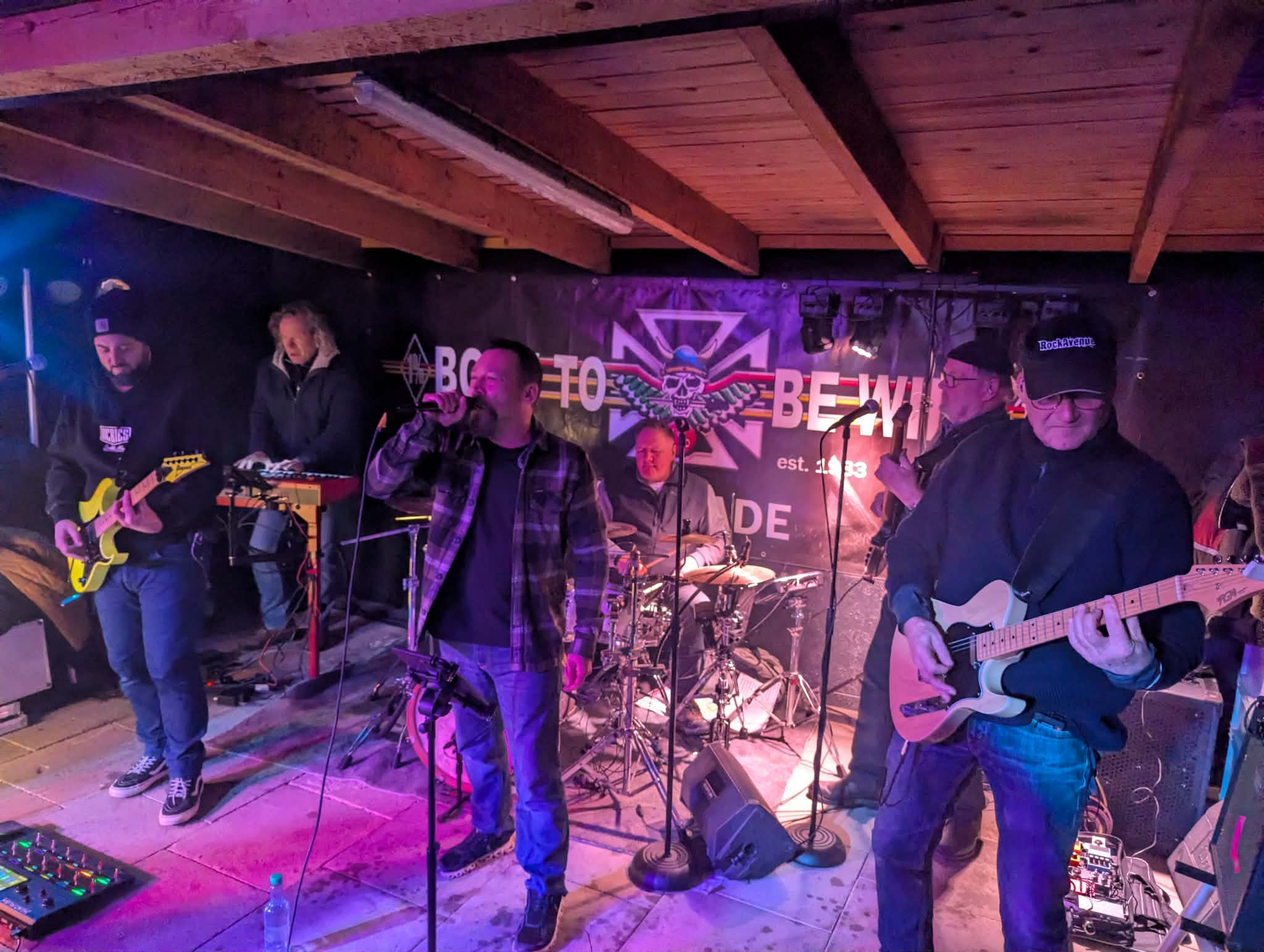 Nun, wie schon erwähnt, war die Winterpaty sehr gut besucht. Das kalte Wetter lockte die Besucher in den gesamten Indoorbereich und dieser war vorne und hinten rappelvoll besetzt. Ein großer Kessel Buntes mit vielen Farben, die das Bild prägten. Insofern hatte die Band Rock Avenue optimale Voraussetzungen, um die ohnehin sehr gute Atmosphäre noch zu steigern.