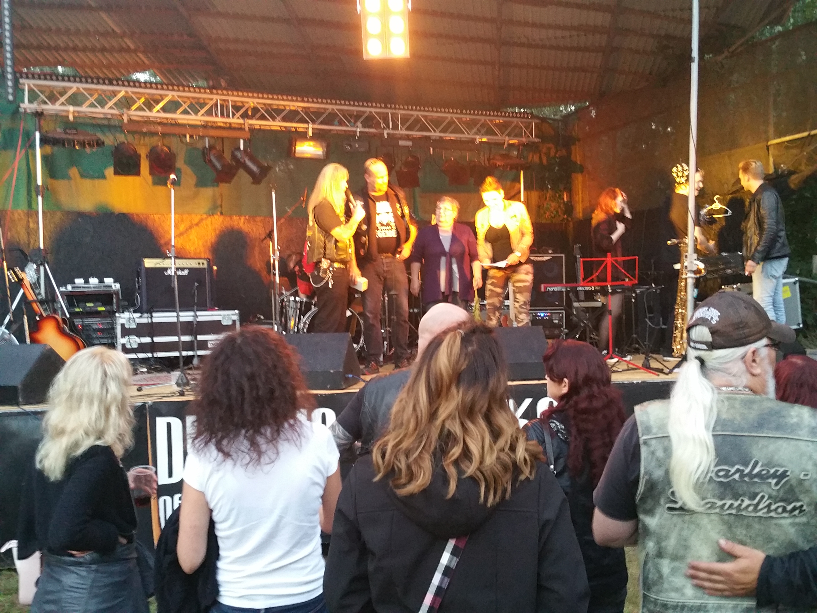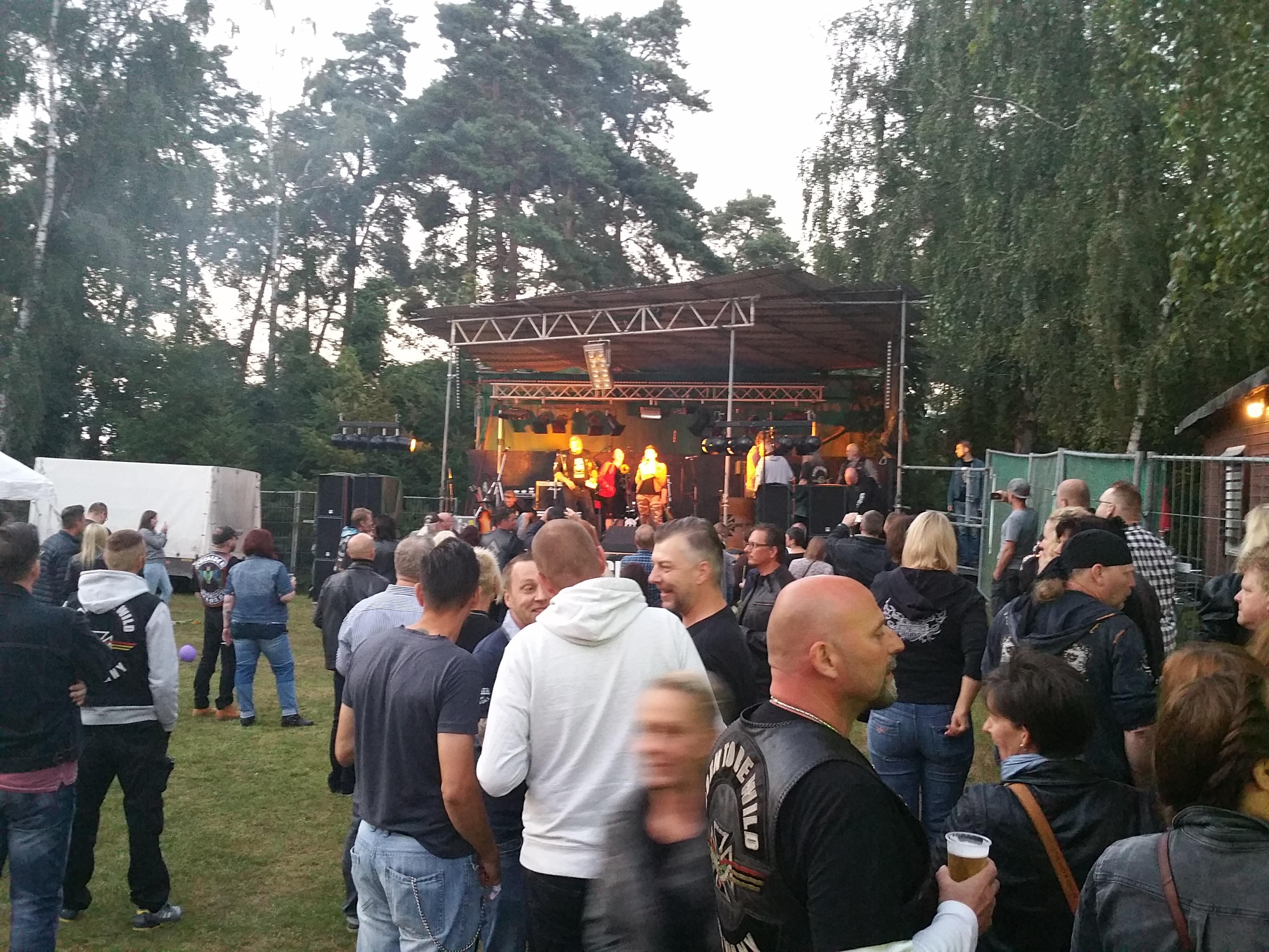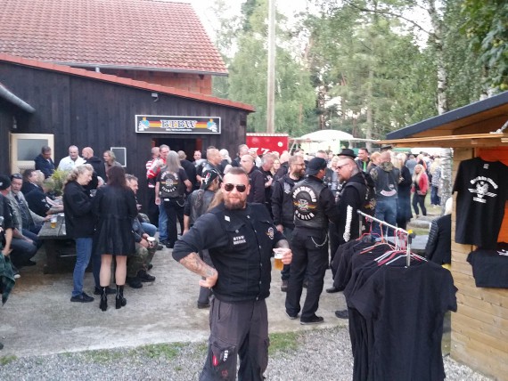 Als ich das Gelände betrat, waren bereits ein Haufen Leute am Start. Schraddel selber rechnete so mit 300 bis 400 Gästen und es würde mich nicht wundern, wenn diese unter dem Strich tatsächlich dort aufgeschlagen sind. Die Atmosphäre war super, viele Zivis mischten sich unter die Kuttenträger, die teilweise von weit her gereist kamen.