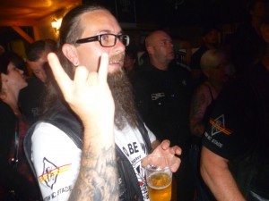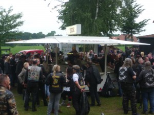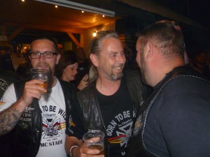 Lange vor dem Gig mischte sich Jimmy unter das Volk, unter denen sich auch der MV Lehrte, der Satansadler MC und der Boundless MC befand. Alle drei Clubs sind ausgewiesene und langjährige Fans von Jimmy und haben ihn auf ihren Partys bereits mehrfach präsentiert. Mit letzterem habe ich in den letzten Jahren selber eine richtig gute Connection aufgebaut.