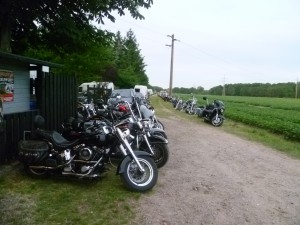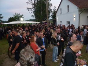 Mit einem italienischen Club-Bruder im Schlepptau schlugen wir bereits kurz nach 20 Uhr am Veranstaltungsgelände auf. Bereits weit vor dem Eingangsportal parkten die Autos dicht an dicht entlang der Zufahrt zum Clubhaus. Zwar begrüßen die Borns auf ihren Partys häufig eine hohe Anzahl an zivilen Gästen, doch an diesem Tag schienen es noch deutlich mehr gewesen zu sein. Bei gutem Wetter erwartete uns ein bunt gemischtes Völkchen, wobei die Kuttenträger letztlich doch die Minderheit bildeten. Die Stimmung war vom Start weg ultra-relaxt.
