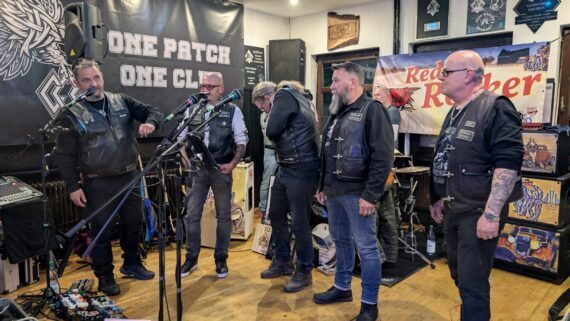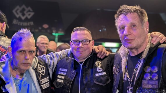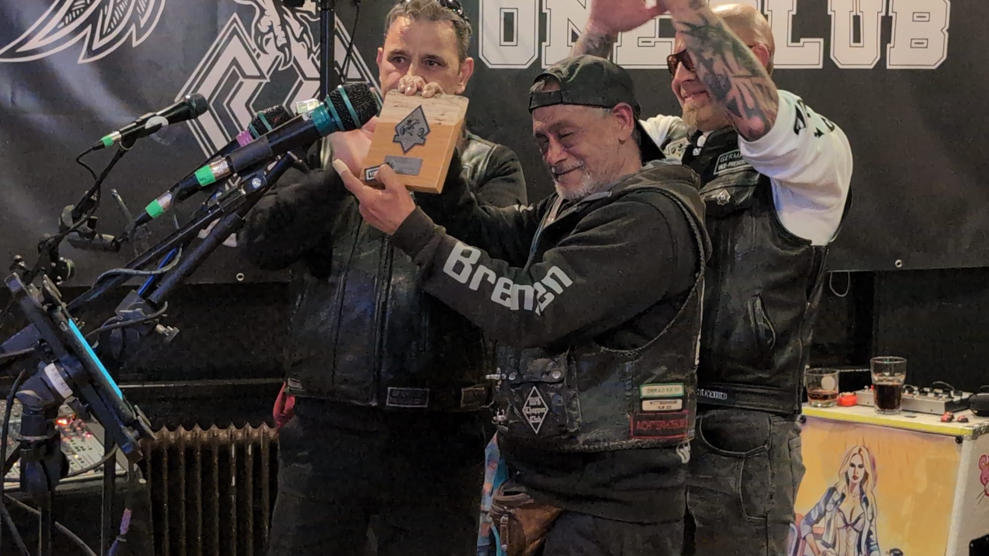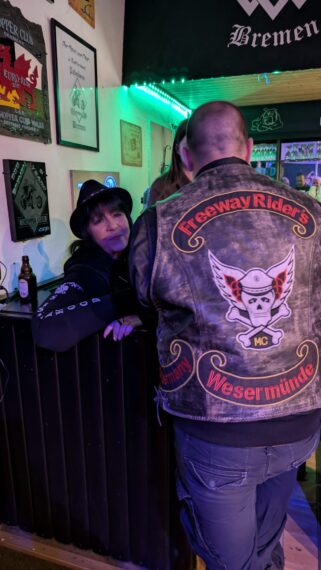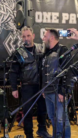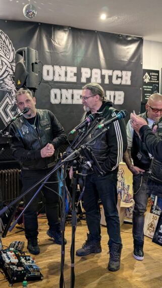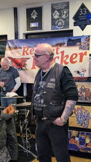 In der Setpause nahm Fitty, Presi des Motherchapters, das Mikro in die Hand und ließ sich zu einigen Aspekten des Chapters Bremen ein. Besonders markant hier die Ehrung von Henry für 10 Jahre Clubtreue. Ich kenne Henry schon lange, noch aus meiner Zeit als Türsteher auf der Bremer Meile. Später dann wurde er Member des ehemaligen Wild Vikings MC Northland und war zeitweilig deren Vice.