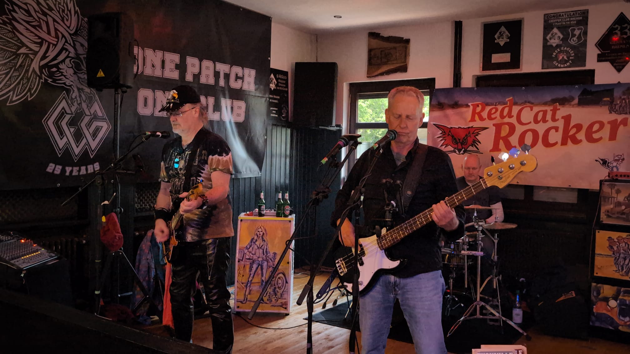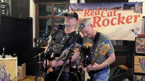 Als ich eintrudelte, stieg die Band Red Cat Rocker gerade in den Gig ein, und das Intro versprach ein cooles Konzert mit reichlich Groove und Songs, die man nicht von jeder Coverband zu hören bekommt. Das Motto für diesen Abend lautete „Rock your Blues away“ und diesem wurde die Kombo absolut gerecht, auch wenn hier und da das Timing etwas danebenlag, was die pure Spielfreude des Trios allerdings komplett wettmachte.