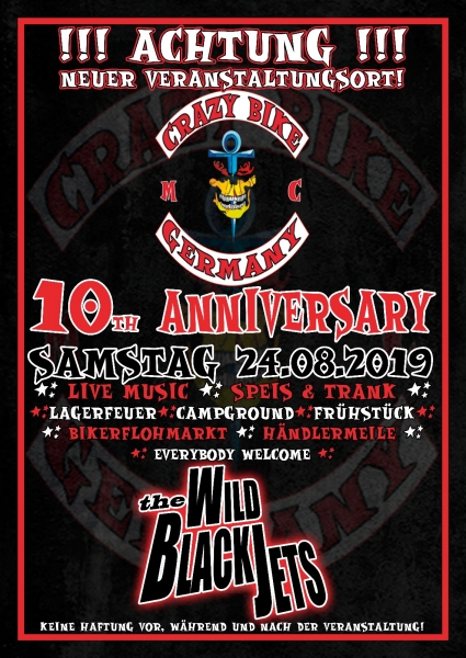Am 24. August feiert der Crazy Bike MC Germany sein 10th Anniversary. Da sich die Männer für diesen besonderen Tag etwas Großes vorgenommen haben, nämlich eine mächtig rockige Party mit möglichst vielen Gästen, mussten sie jedoch vorher eine dafür geeignete Lokation suchen. Nicht, dass der MC kein eigenes Clubhouse hat, nee, aber sein Domizil in Bremen-Woltmershausen wäre definitiv zu klein gewesen für das, was man im August erwartet.