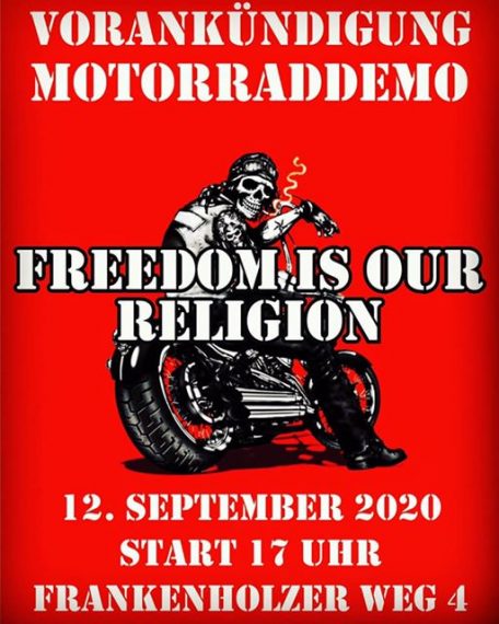 Für Freedom is our Religion gibt es viele rechtliche Aspekte zu bedenken. Der Veranstalter wird daher auch juristisch beraten. Wer also an der Demo teilnehmen möchte und zum Beispiel in größeren Kolonnen anrückt, ist gut beraten, sich mit den Machern im Vorfeld in Verbindung zu setzen, damit es vor Ort zu keinen Irritationen kommt. Es empfiehlt sich die Organisation als sogenannter „geschlossener Verband“, gem. § 27 StVO. Wie gesagt, Infos machen nicht dümmer. Kontaktet bei Bedarf bitte den Veranstalter.