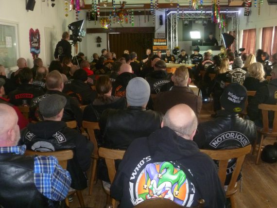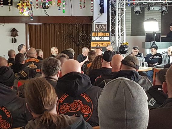 Das komplexe Thema führte relativ schnell zu einer Dominanz der zwei großen MC’s in der Talkrunde. Das war zu erwarten, da sie voll in dem Thema drinstecken. Leider kamen die Vertreter der anderen drei Clubs dadurch zu kurz. Es führte jedoch automatisch zu mehr Input & Facts in der Sache durch die vom Insignienverbot betroffenen Clubs, welche Peter, Vice President des Lagannya MC Germany, inhaltlich sehr gut ergänzen konnte.