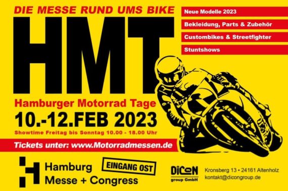 Die Hamburger Motorradtage wecken die Vorfreude auf die Saison 2023. In den Hamburger Messehallen, präsentieren zahlreiche Aussteller die Neuheiten der kommenden Saison. Auf der erfolgreichsten Motorradmesse Norddeutschlands wird alles geboten, was das Fahrerherz höher schlagen lässt: Die aktuellen Modelle namhafter Hersteller und umfangreiches Zubehör sowie Bekleidung und Helme für alle Anforderungen. Ob Chopper-, Sportler-, Roller-, Touren- oder Endurofahrer, in den Hamburger Messehallen kommen alle auf ihre Kosten!