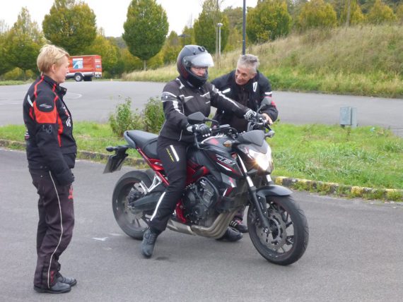 Die Bikers School hat genügend verfügbare Motorräder in seinem Fuhrpark. Mehrere Motorräder sind extra tiefergelegt. Der Kurs ist auch für Wiedereinsteiger und Fahrschulwechsler geeignet.Der Kurs dauert ca. drei Stunden, wobei jeder Fahrlehrer maximal drei Fahrschüler betreut. Schutzkleidung wird bei Bedarf in den gängigen Größen gestellt, festes Schuhwerk allerdings muss mitgebracht werden.