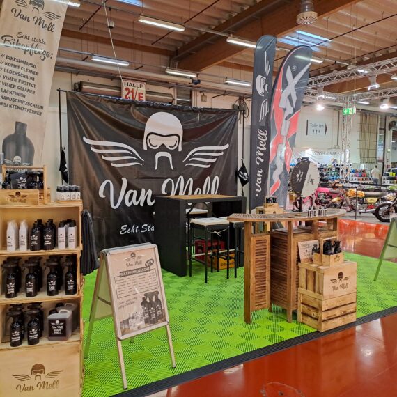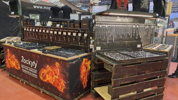 Am Stand von Rockyfy kam ich ins Gespräch mit Willi, dem Betreiber eines Shops aus Kärnten. Der Österreicher war extrem locker drauf und gab mir bereitwillig Auskunft über sein Angebot an Schmuck für Biker. Ich merkte schnell, dass die Story dahinter hoch interessant ist, da Willi überwiegend selbst designte Kreationen anbietet, die ziemlich durchdacht sind. Daher werde ich mit dem ehemlaligen Architekten nach der Messe eine Präsentation im Onlinemagazin erarbeiten.