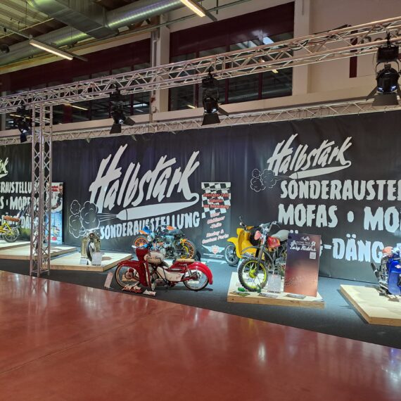 Ich hatte mir den Aufbauplan vorher gar nicht angeschaut und schlenderte einfach gemütlich durch die beiden unteren Hallen. Irgendwann suchte ich nach dem Treppenaufgang zur ersten Etage, wo bis dato u. a. immer die große Sonderausstellung Bikes lief und auch etliche Stände aus dem After Market (Update: siehe unten) mit teilweise coolen Angeboten lockten. Aber in diesem Jahr war die erste Etage gar nicht belegt.