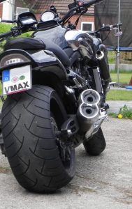 In den USA gab es in den früheren 80ern regelmäßig die Rennen auf der 1/4 Meile, an denen ausschließlich Harleys teilnahmen! Dem wollten die Japsen mit der Vmax entgegen treten. Naja, und das gelang ihnen! Zwar konnte man anfänglich nur geradeaus damit fahren, schlecht bremsen, und ist gerade mal 100 Meilen weit kommen, aber was die Beschleunigung betraf, fuhr die Vmax alles in Grund und Boden. Auch heute noch sorgt sie für lange Arme, ein Dauergrinsen beim Fahrer und erntet die ehrfürchtigen Blicke der älteren Biker oder die unglaublichen der jüngeren Biker mit ihren Racern, denen man an der Ampel zeigt, was Beschleunigung bedeutet!