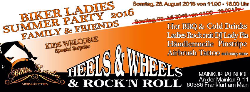 Rein in das Thema, und siehe da, am 28. August rocken die Ladys aus der Finanz-Metropole das Event „Heels & Wheels & Rock ‚N‘ Roll“. Die Nummer bietet alles, was man von einem zünftigen Biker-Event erwarten darf. Daher habe ich mich mal mit Slavi in Verbindung gesetzt, um mehr über die Truppe sowie die Sommerparty der Biker-Ladys zu erfahren.