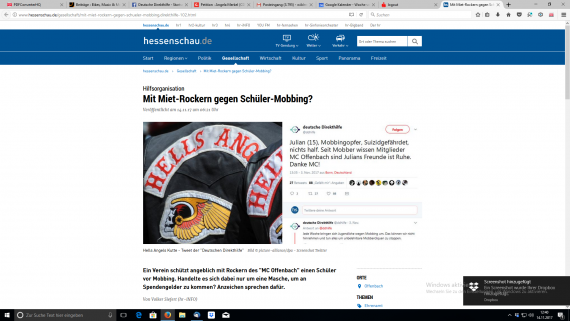 In seinem Artikel vom 14. November unter der Überschrift „Mit Miet-Rockern gegen Mobbingopfer“ auf hessenschau.de beschreibt der Redakteur Volker Seifert eine Initiative der Deutschen Direkthilfe aus Bonn zum Schutz vor Mobbing mit vermeintlich aktiver Beteiligung von Mitgliedern der Hells Angels aus Offenbach. Jedenfalls suggeriert dieses der Artikel in sehr eindeutiger Form. Schon bei meiner ersten Lesung fielen mir einige Aspekte auf, die nicht nur auf eine ungenügende Recherche, sondern das bewusste Steuern der Meinungsbildung gegen die Deutsche Direkthilfe sowie den Hells Angels MC vermuten ließ.