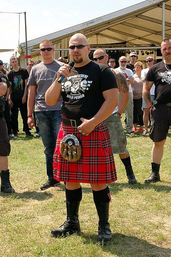 Vor einigen Jahren wurde das Ultra-Steinstoßen durch die Highland-Games ersetzt. Die Idee stammte seinerzeit von Dennis Feierabend aus Berlin. Sein Markenzeichen: Der Schottenrock! Er ist selber in der Highland-Games-Szene unterwegs, nimmt an den offiziellen Wettbewerben der „Clans“ teil. Dennis und ich waren vom Start weg auf einer LInie. Zwar musste ich ihn etwas ausbremsen, wir wollen ja mit den Highland-Games auf dem Jamboree keinen intensiven Wettbewerb anbieten, doch obwohl er bestimmte klassische Diziplinen nicht aufnehmen konnte, ist er jedes Jahr am Start, stellt sogar das notwendige Equipment.