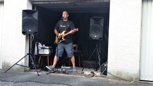 Tony Hudspeths Stagebereich war schlicht und ergreifend eine Garage. Andere Musiker mögen da schon einmal mit den Augen rollen, für Tony war es jedoch genau das richtige Umfeld. Er ist nicht nur ein sehr geiler Gitarrist und versierter Sänger, nee, er bringt auch immer mal wieder den ein oder anderen Kalauer, so auch auf dieser Party, und steht auf den direkten Kontakt zum Publikum. Leider war die kleine PA etwas überfordert, den Gesang 100% clean rüber zu bringen, dafür kamen die Solis von Tony absolut dynamisch daher. Er präsentierte sein Repertoire in mehreren Sets und hat gute Laune verbreitet.