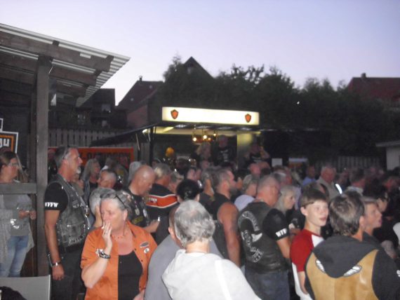 Das Clubhouse liegt nämlich inmitten de Stadtkerns entlang einer Wohnstraße. Doch wo andernorts durchaus Probleme auftreten können, ist dieser Standort absolut im Interesse des Flying Wheels MC, der besonderen Wert einen guten Kontakt zu den Nachbarn legt. Das dieses auf Gegenseitigkeit beruht, bewies im weiteren Verlauf die hohe Anzahl der zivilen Gäste, die im Verhältnis zur Gesamtzahl sicherlich die Mehrheit bildeten. So bekam die Party einen durchaus familiären Touch.