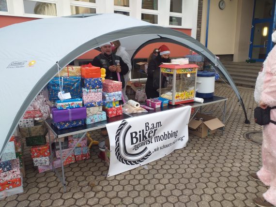 Am 03. Dezember waren wir schlussendlich in Ahrweiler an der Aloisius Grundschule und es beteiligten sich folgende Communitys, Clubs sowie Chapter an der Aktion: LOBO MC Homburg, Street Ghosts Nomads, Gremium MC Nomads Germany, Street Monkeys MF, Freeway Riders MC Essen, MC Blomberg, Biker’s Club Germany IG, Hardcore Crew Cassel,