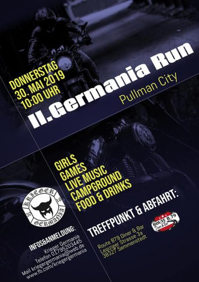 Für den 30. Mai lädt Germania Krieger zu seinem 2. Germania Run. Ich habe Presi Oli auf dem letztjährigen Motorcycle Jamboree erstmalig getroffen. Seitdem verfolge ich sein Treiben und er meines.