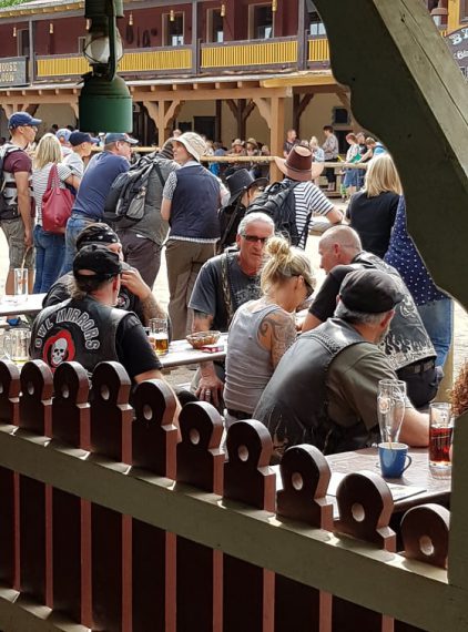 In Pullmann City. Die Lokalität vor Ort ist ein Hammer. Eine Western Stadt mitten im Harz. Dort sitzt man vorm Saloon, Cowboys, Pferde, eine Menge Bikes sowie schöne Frauen! Und Mann staubt ordentlich ein, wenn ein Moped durch fährt.