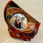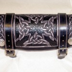 So ähnlich ging es mir auf der Custom-Bike-Show am Stand von Theobald Leatherworks. Was die Macher aus Nierstein am Rhein dort ausstellten, war in der Tat feinstes Sattler-Handwerk, handmade in eigener Manufaktur. Sattle-Bags, Schwing- oder Rahmen-Taschen, Werkzeug-Rollen und extrem aufwendig punzierte Kutten, die Fülle an Impressionen hat mich echt erstaunt. In jedem Fall hat man sofort gesehen, hier ist ein Künstler am Werk.