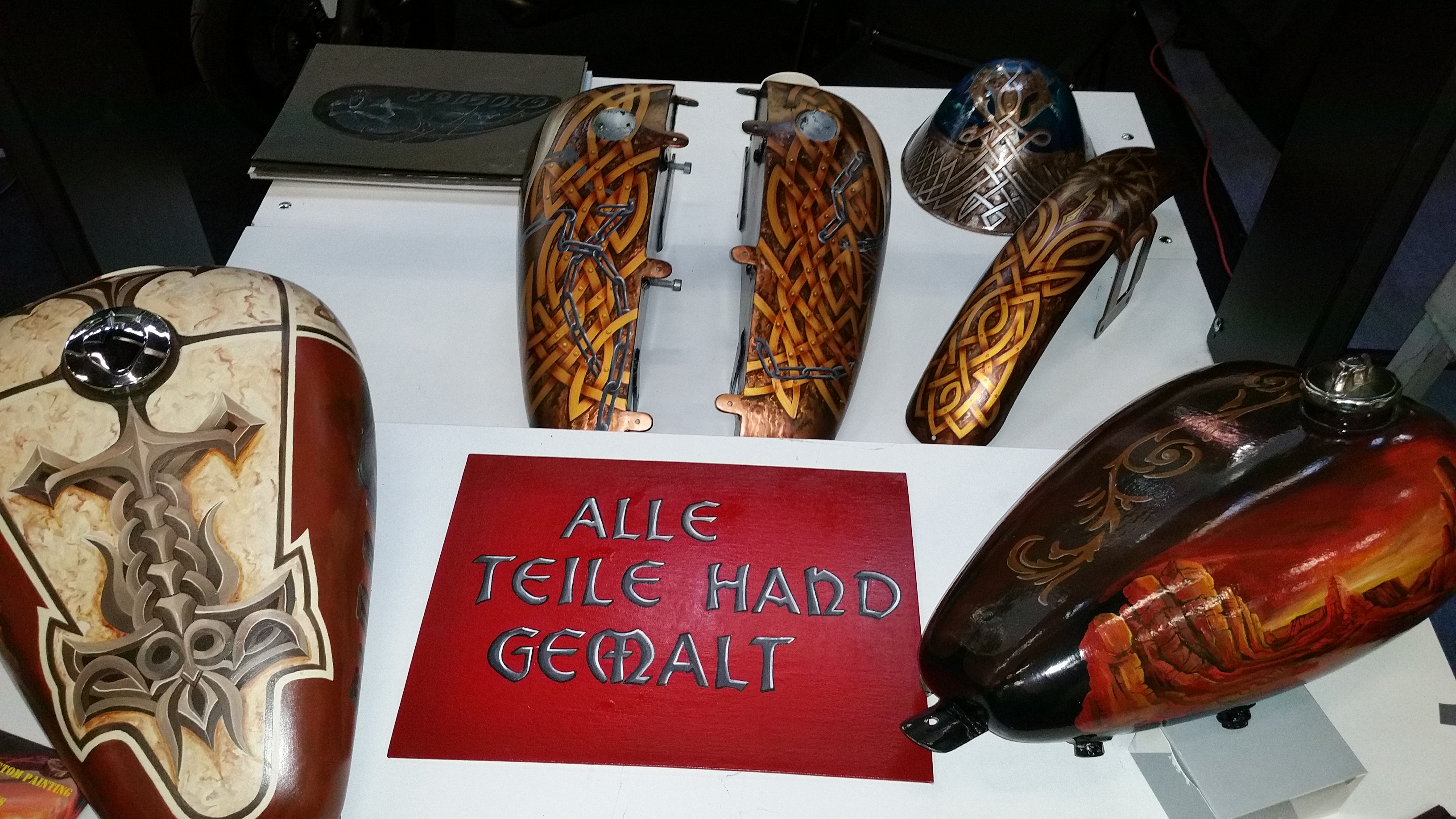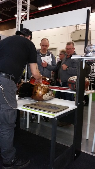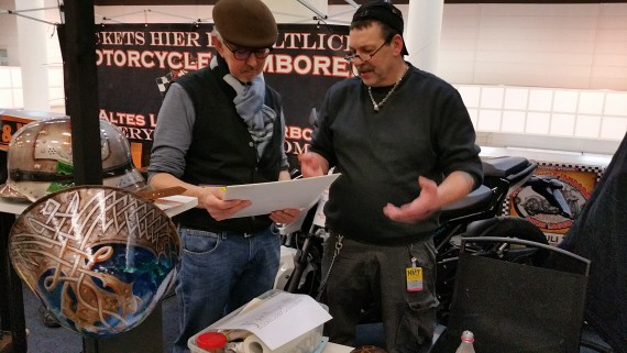 Das gilt auch für Störte 1%er. Er hatte auf der Messe in Rodenkirchen mit mir zusammen seine ersten Erfahrungen in diesem Bereich gesammelt. Das half ihm zu erkennen, welche Besucher einfach nur schlau schnacken wollen, und welche sich ernsthaft für sein Original Custom Painting interessieren.