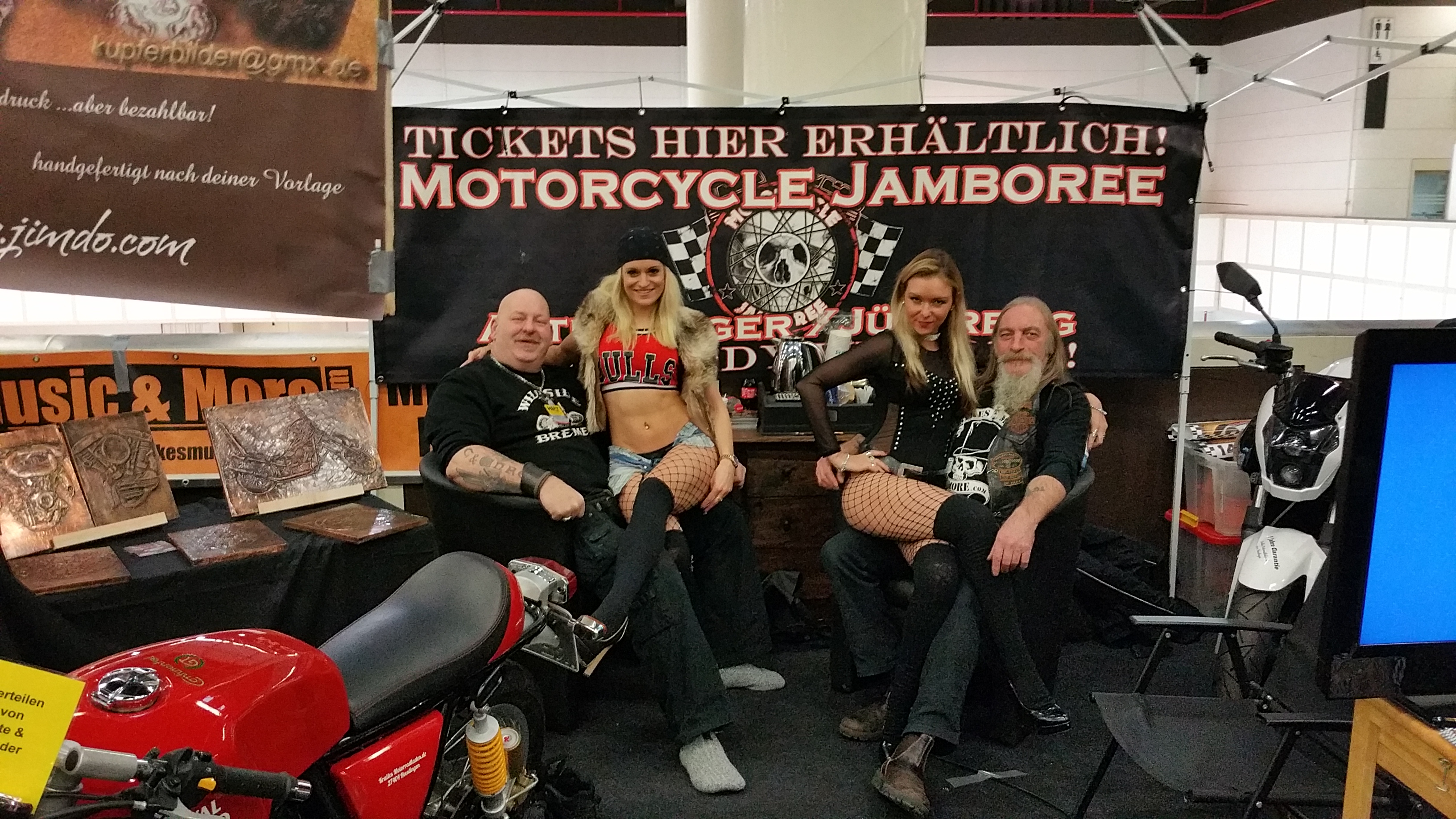 Nun, wir sind ein Online-Magazin. Wir haben nichts an Hardware zu präsentieren, über das man am Stand fachsimpeln könnte. Der Stand dient für mich ausschließlich als Meeting-Point, und er macht es möglich, anderen Rockern eine Plattform zu bieten, um ihre ersten Business-Erfahrungen auf einer Messe zu machen. Hier gilt ganz klar das Motto „In den Farben getrennt, in der Sache vereint!“. Sowas ergbit sich aus vielen Talks. Wer daran Interesse hat, darf sich melden. Wenn die Vibration passt, können wir über 2017 reden. Was keinesfalls zu kurz kam, war der Spaß und geschwollene Füße!