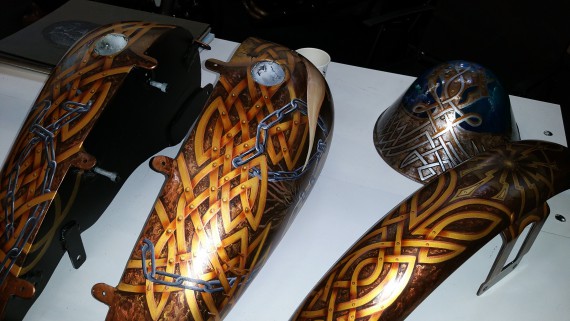 Zur Klarstellung: Sämtliche Exponate werden von Störte 1%er mit Acryl-Farben per Pinsel komplett handbemalt. Jeder Strich muss sechsmal gezogen werden, damit die Farbe überhaupt auf dem Untergrund hält. Danach folgt der finale Klar-Lack. Daran erkennt ihr, wie aufwendig das Custom Painting ist. Logen ist das kein Schnäppchen, aber in jedem Fall für Individualisten bezahlbar. Auch er hatte am Samstag die deutlich besseren Talks.