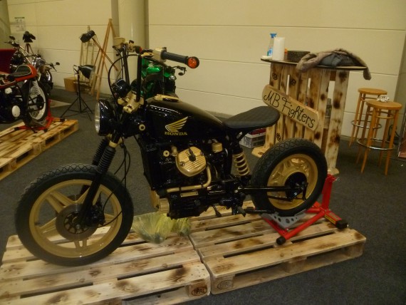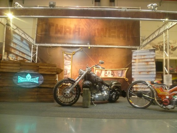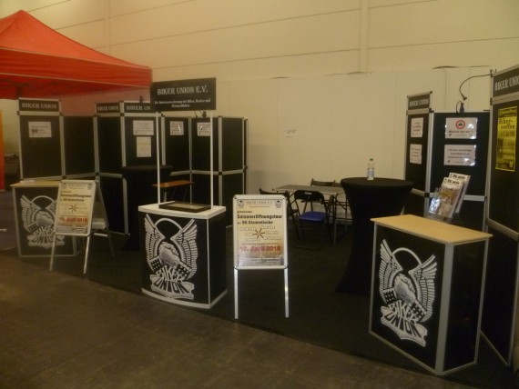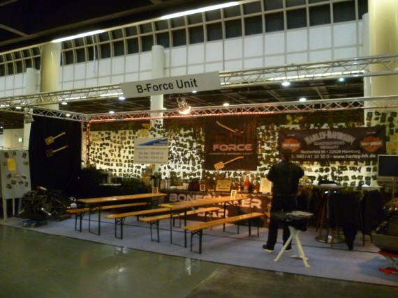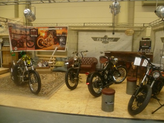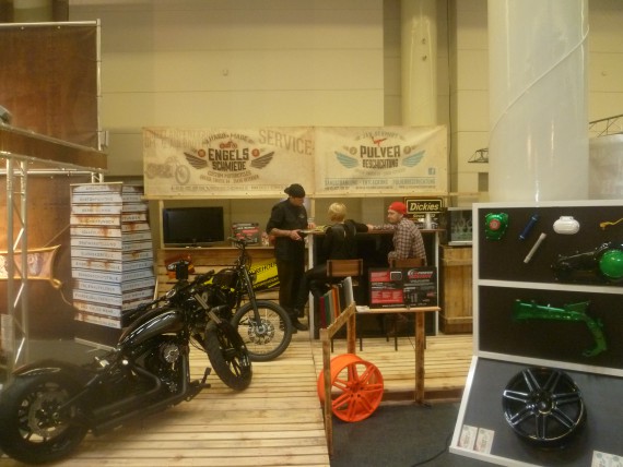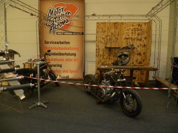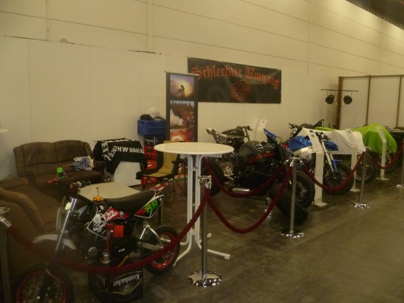 Orga-Chef „Wolle“ konnte das jedoch mit neunen Ausstellern kompensieren. Namen wie „Schlechter Umgang“ ließen zwar nichts Gutes erahnen, letztlich waren sie aber ein Gewinn. Denn gerade die Mäner aus der Streetfighter-Gilde haben sich einen Kopf gemacht, um ihren Lifestyle top präsentieren zu können. Man muss nicht zwingend mit einem professionellen Messestand aufwarten. Mit Kreativität und Einsatz erreicht man auch im Low-Bufget-Bereich so einiges. Due Buell Riders sind ein weiteres gutes Beispiel.