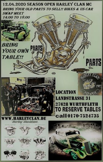 Im nächsten Jahr finden beim Harley Clan North MC zwei Events statt, die ihr euch schon mal jetzt etwas genauer anschauen solltet. Zum einen lädt der Club für den 12. April erneut zu seinem mittleweile sehr gut besuchten Swap Meet ein, zu dem ausschließlich private Anbieter willkommen, sprich gewerbliche Händler ausgeschlossen sind.