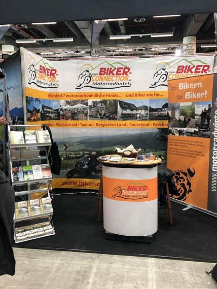 Sieben Hotels haben sich unter der Homepage www.biker-connection.de zusammen geschlossen. Statt sich voneinander abzugrenzen, setzen sie auf die Synergie eines gemeinsamen Auftritts. Anja Böhm, sie betreibt mit ihrem Mann Richard u.a den Gasthof am Turm in Braunfels, erklärte mir bereitwillig und freundlich das Angebot. Die Hotels liegen im Sauerland, der Eifel, dem Taunusgebiet und angrenzenden Regionen. Die Betriebe bieten insgesamt 19 Touren an. Vor Ort übergab mir Anja ein informatives Roadbook mit einer Kurzvorstellung der Hotels sowie etlichen Tourstrecken. Wenn der Verbund Interesse hat, kommt mehr Input nach.