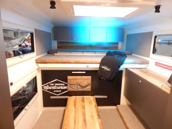 Diesen Messebesuch hatte ich mir fest vorgenommen, da der Talk mit Steffen von www.sportcaravan.de im Vorfeld sehr locker und informativ rüber kam. Leider traf ich ihn zweimal nicht am Stand an. Tja, Messe heißt Business, auch anderswo und jederzeit. Nun, das Team gab gerne Auskunft. Die Sportcaravans sind keine Wohnwagen, es sind Anhänger, in denen im hinteren Bereich der Ladeplatz für zwei Bikes und im vorderen Sektor der Wohnbereich für die Nutzer angesiedelt ist. Unter dem Namen Ice Cube 4 und 5 gibt es zwei Ausführungen. In das Thema steige ich noch gesondert ein.