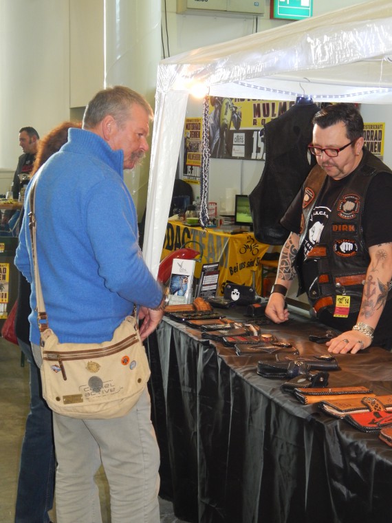 Dirk berät am Stand von Ideen in Leder Interessenten.