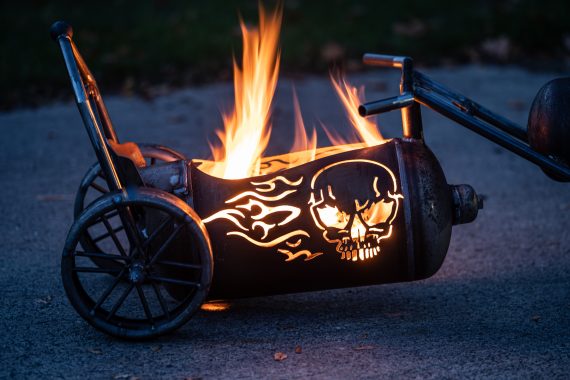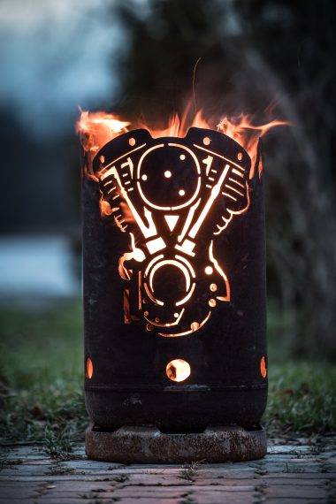Ja, mein Sohn und meine Schwiegertochter bedienen ausschließlich dieses Potenzial. Viele Menschen wollen keine Massenware aus China, sondern personalisierte, individuelle Feuerstellen. Da spielt es keine Rolle, ob es für den eigenen Garten ist oder verschenkt werden soll. Ob es dann eine individuell gestaltete Feuerstelle für eine Bikerhochzeit ist oder der Lieblingswhiskey. Alles was machbar und erlaubt ist, bringen wir auf´s Metall!