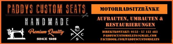 Alleine der Umstand, dass mir Paddy ohne Ende Motive von ihren Arbeiten, ihren beiden Bikes, sowie zu ihren Aktivitäten in der Szene zugesandt hat, belegt recht klar, dass sie mit vollem Herzen dabei ist und viel Wert darauf legt authentisch präsentiert zu werden. Da lege ich mich jetzt einfach mal fest. Vor allem aber ist sie schon so lange am Start, dass Paddys Custom Seats im Pott und weit über dessen Grenzen hinaus einen guten Klang an.