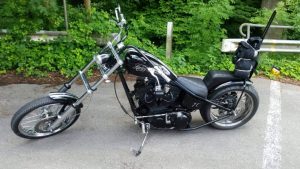 Mein Eigen nenne ich eine VT 600 Shadow 1988 und eine Softail Evo 1990, beide komplett umgebaut. Und natürlich fahre ich leidenschaftlich gerne Mopett.