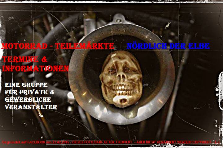 Motorrad – Teilemärkte haben mich von jeher fasziniert, das Drumherum, die Leute, Altes und Neues, ich will wieder mehr davon! Deshalb habe für alle Interessierten auf Facebook eine Gruppe eröffnet „Motorrad – Teilemärkte nördlich der Elbe “Nördlich“ weil der Norden meine Heimat ist. Ich bin gespannt was sich daraus entwickelt.