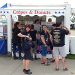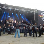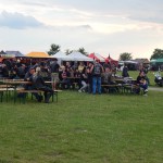 Das sahen wohl auch die meisten der Besucher so. Denn als um ca. 20.30 Uhr der Vorplatz noch ungewöhnlich leer war, füllte sich dieser vor dem Gig von Völkerball beträchtlich und die Meute machte eine geile Stimmung. Ob die Besucherzahl am Freitag höher oder niedriger als sonst war, kann ich nicht beurteilen. Auf dem Campground herrschte jedenfalls mächtig reges Treiben. Ich vermute, es wird sich die Waage gehalten haben. Genaue Zahlen kenne ich jedoch nicht. Also fragt erst gar nicht danach. Der Veranstalter war jedenfalls recht entspannt.